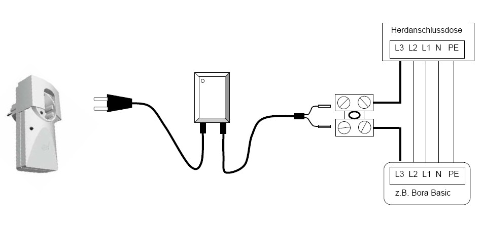 Für das Schalten von Leistungen, insbesondere des Lüftermotors direkt oder über spezialisierte Eingänge (z. B. Bora L3, Bosch oder Neff L1), ist die Installation durch eine ausgebildete Elektrofachkraft erforderlich