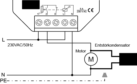 Der Entstörkondensator wird gegen Spitzenspannungen in der Netzversorgung infolge von induktiven Schaltvorgängen verwendet. Bei manchen Lüftermotoren kann es bei Schaltvorgängen der Geräte FDS 100 bzw. KDS 110/116 unter Last zu unkontrollierten Relaisschaltungen kommen. Für Abhilfe sorgt dieser Entstörkondensator.