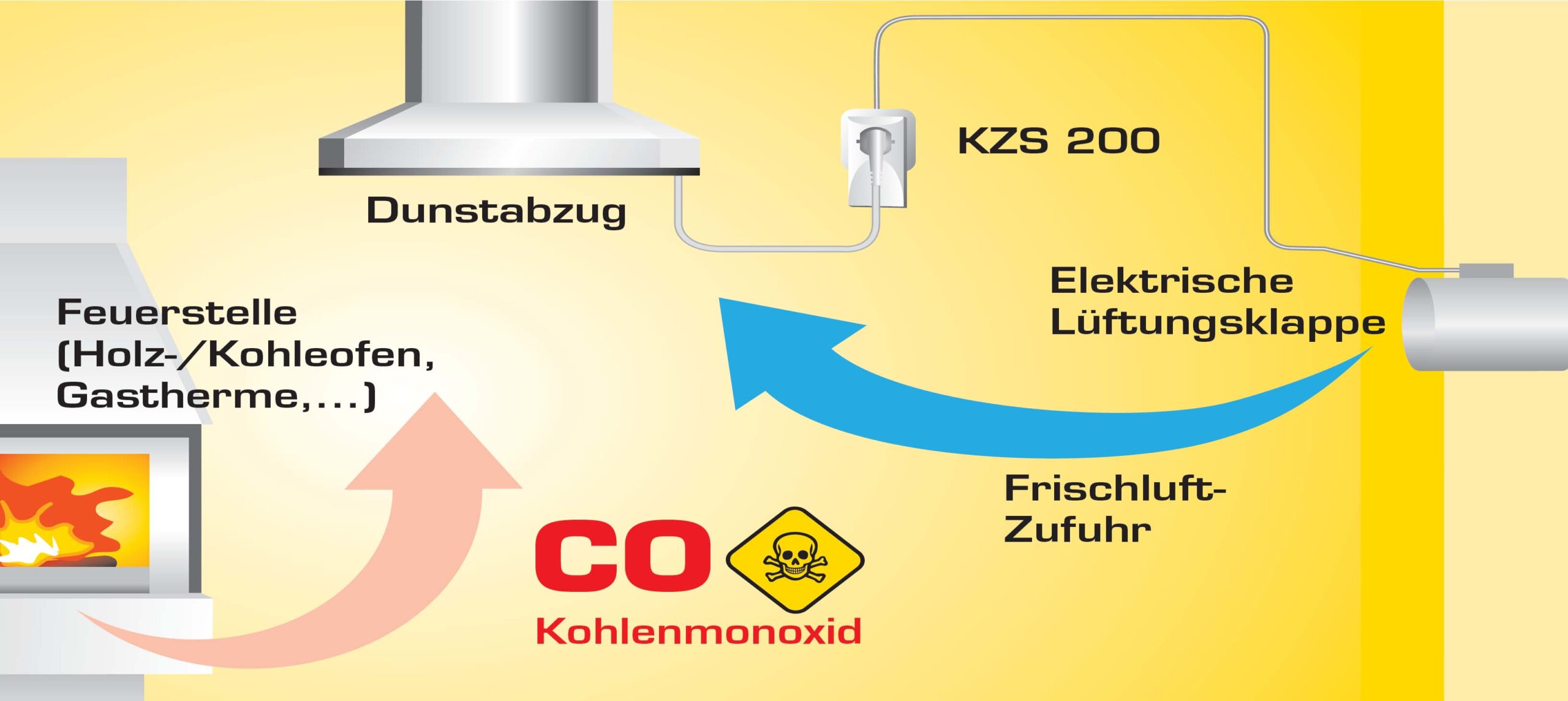 Wird der Motor eingeschaltet, öffnet die KZS 200 automatisch eine angeschlossene Zuluftklappe – und schließt sie zuverlässig wieder, sobald der Motor abgeschaltet wird. So strömt nur dann Frischluft zu, wenn sie wirklich benötigt wird – das verhindert Unterdruck und schützt vor gefährlichem Rückstau von Abgasen.