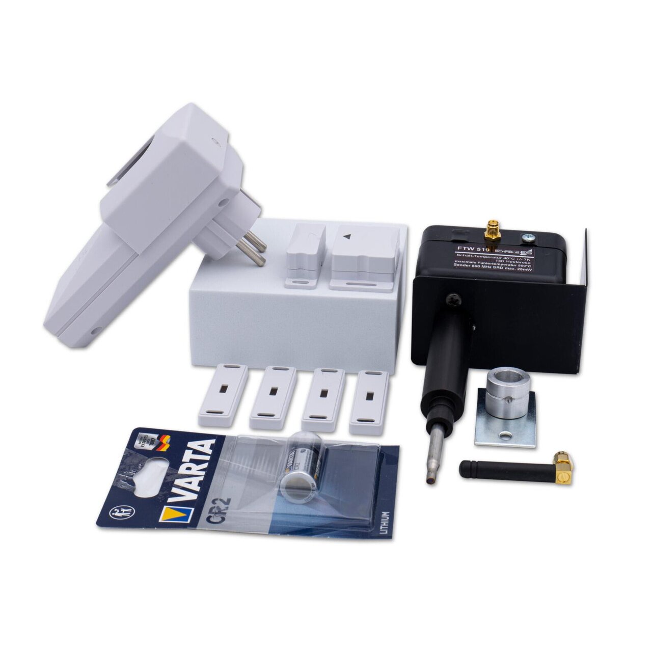 • 4 Distanzplatten für Magnet/Sender (für Höhenausgleich bei der Montage am Fenster oder Fensterrahmen)