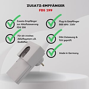 Zum bestehenden Set kann ein weiterer Empfänger (Einbau: FDS 199, Zwischenstecker: FDS 299) hinzugeschaltet werden.