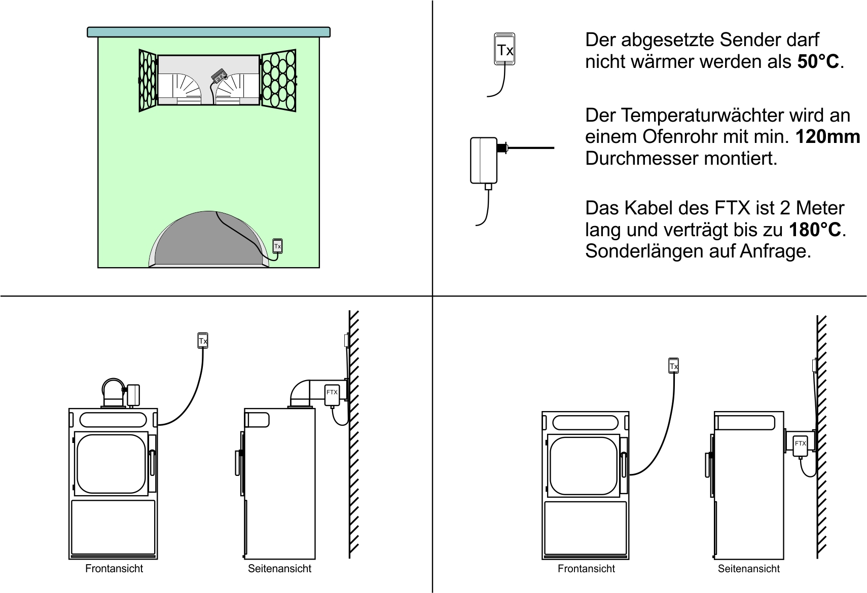 • FTX 519 misst die Ofentemperatur – bei kaltem ungenutzten Ofen kann dadurch das Fenster geschlossen bleiben