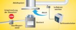 Der Luftstromwächter wird in den Abluftstrom einer Dunstabzugshaube hinter den Fettfilter gesetzt und überwacht, ob die Abluft wirklich in der geforderten und einstellbaren Geschwindigkeit strömt. Ist das der Fall, wird ein potenzialfreies Wechselrelais geschaltet, das für gastronomische Gas-Kochfelder die Gas-Zufuhr mittels eines Gas-Magnetabsperrventils freigibt. Der Luftstromwächter ist die Grundlage für das sog. “Gegenseitige Verriegeln von Abluft und Gaszufuhr”.