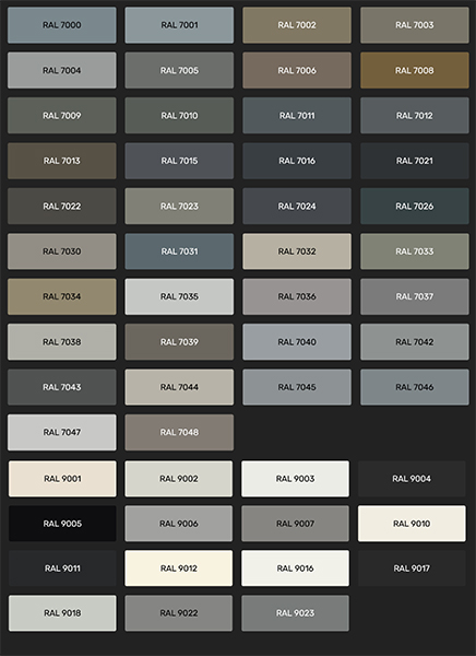 • Individuelle Farbgestaltung: Lackierung der Abluftsteuerung in Ihrem Wunsch-RAL-Farbton, wählen Sie frei aus den nebenstehenden RAL-Farbpaletten