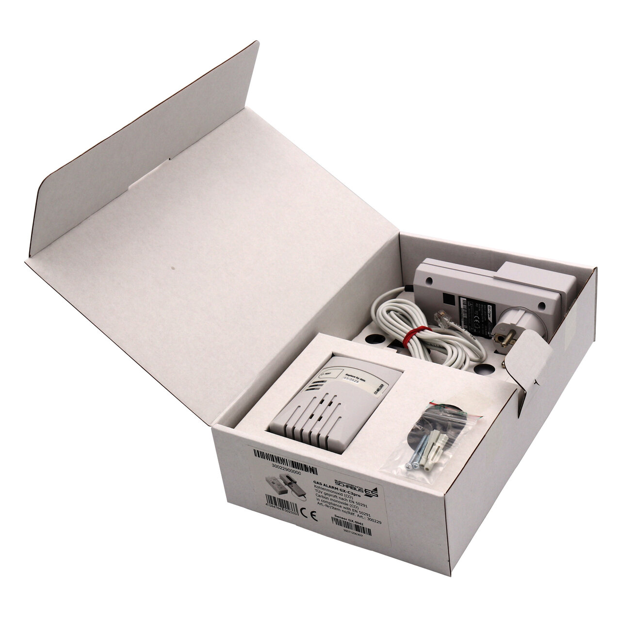 Das Warngerät arbeitet mit einem präzisen, TÜV-geprüften Sensor und reagiert abgestuft: Während hohe CO-Konzentrationen sofort Alarm auslösen, erfolgt bei niedrigeren Werten eine zeitverzögerte Warnung – genau so, wie es die Norm vorsieht. Damit werden Fehlalarme weitestgehend vermieden, während schleichende Vergiftungen sicher erkannt werden. Für Installationen außerhalb des Überwachungsraums kann das Sensorkabel einfach durch eine 13-mm-Wandöffnung geführt werden, der externe Sensor wird per Steckverbindung angeschlossen.