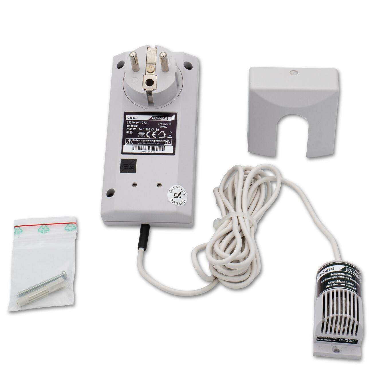 Bei Alarm wird auch das am GX-B3 angeschlossene Gerät zuverlässig abgeschaltet ( z.B. eine Gas-Therme). Erst durch intensive Durchlüftung und einen Reset durch kurzes ab- und wieder einstecken in die Steckdose wird das angeschlossene Gerät wieder freigegeben.