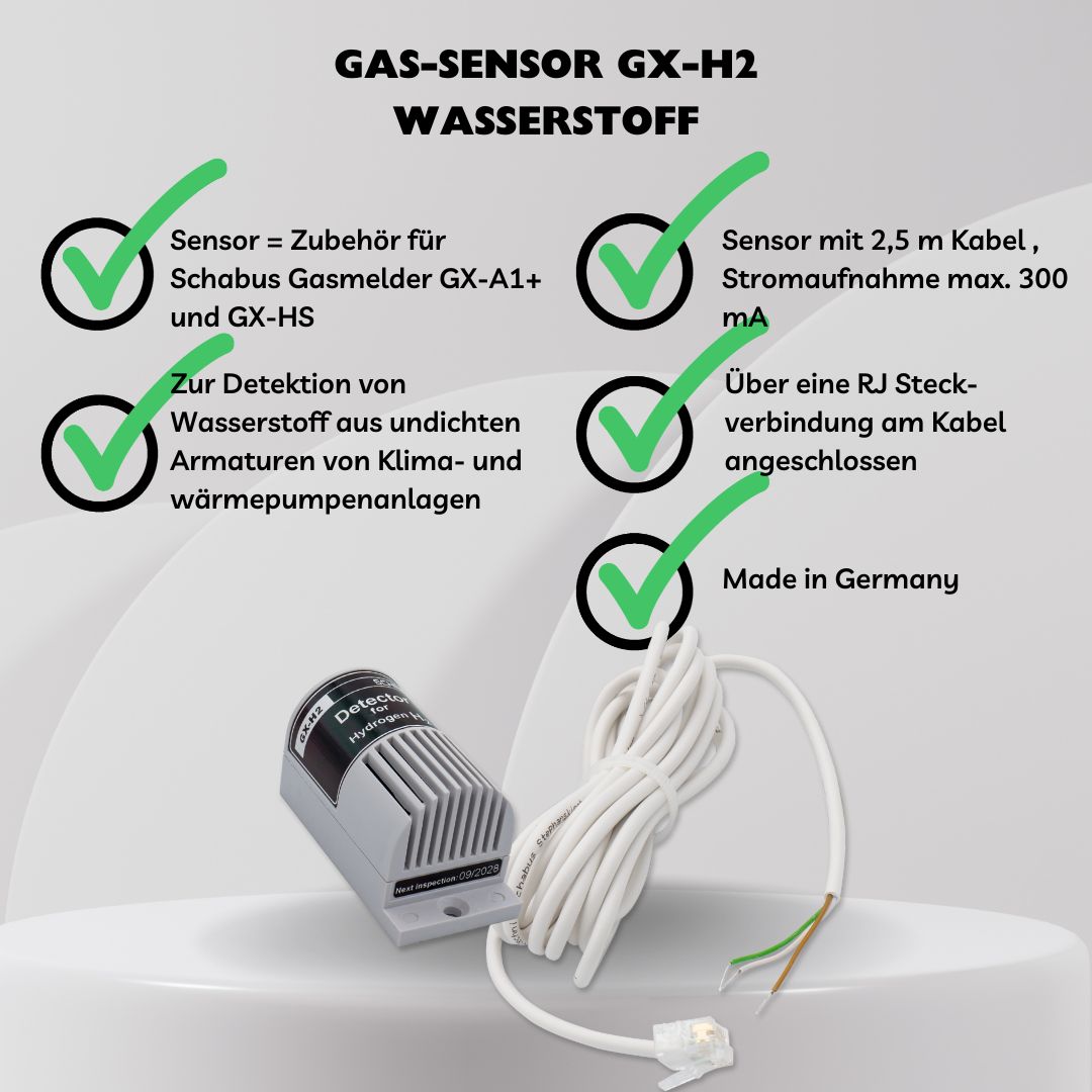 • Gassensor GX-H2 mit 2,5 m Sensorleitung