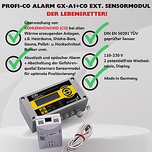 Wichtig: Der GX-CO2-30 erfüllt wesentliche Anforderungen der Technischen Regeln für Gefahrstoffe (TRGS) in Getränkeschankanlagen, ist jedoch nicht als vollständiger Ersatz eines TRGS-konformen Systems zertifiziert. Er bietet dafür maximale Kompatibilität zu den bewährten SCHABUS-Systemen und eignet sich hervorragend als praxisnahes Warnsystem für Gastronomie, Lebensmittelverarbeitung und technische Betriebsräume mit CO₂-Anwendungen.