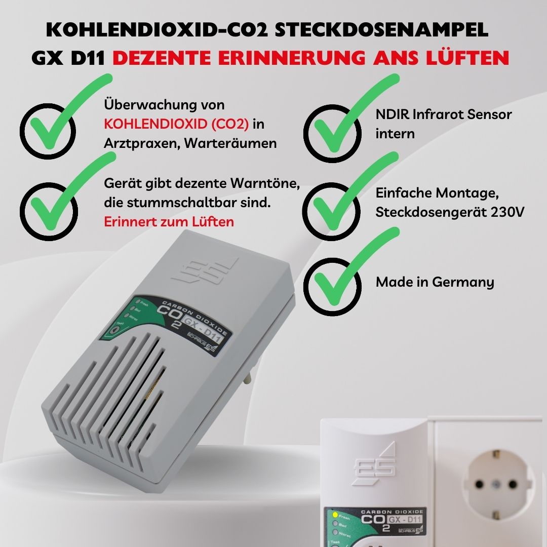 GX-D11 CO2 Steckdosen-Ampel speziell für Arztpraxen, Wartezimmer
