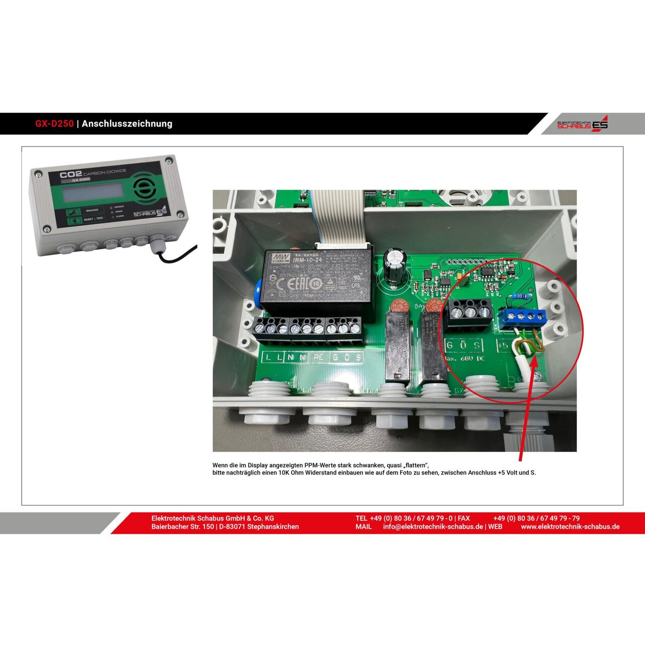 CO₂-Warngerät GX-D250 – Präzise Raumluftüberwachung mit externem Sensor und Relaisausgang