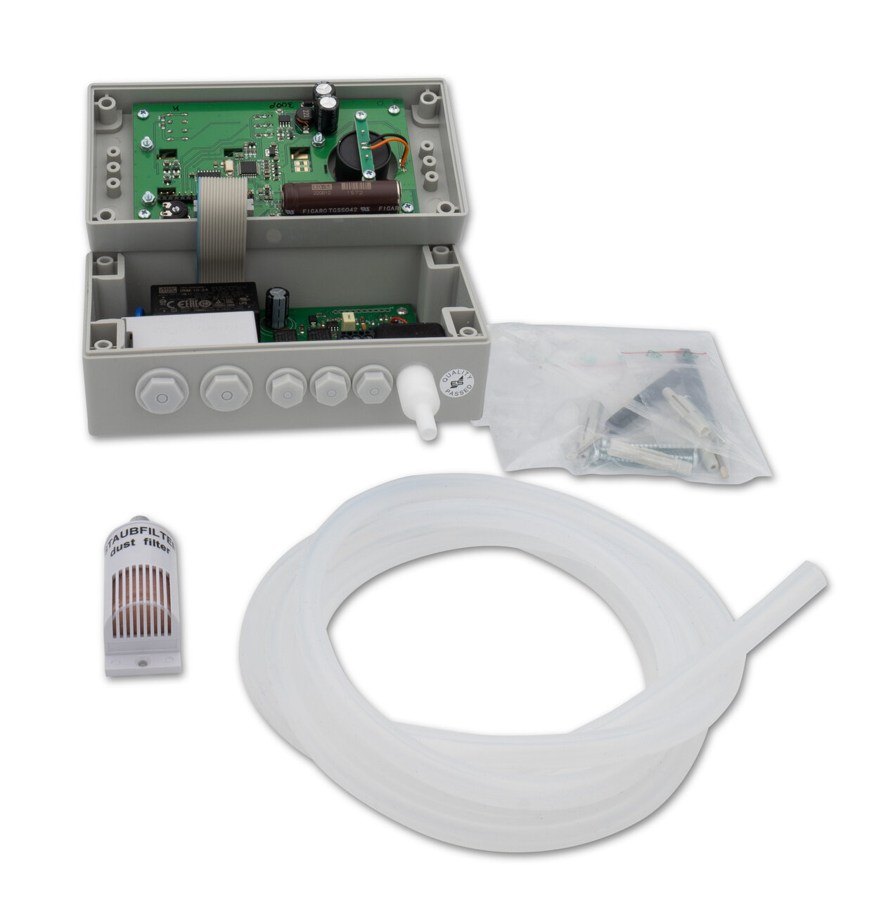 Der elektrochemische Sensor im Inneren des Geräts hat – abhängig von den Umgebungsbedingungen – eine Lebensdauer von sechs bis zehn Jahren und kann bei Bedarf durch Elektrotechnik Schabus im Werk ausgetauscht werden. Die fest installierte 230-Volt-Zuleitung sorgt für eine zuverlässige Spannungsversorgung, wodurch das Gerät direkt nach dem Einschalten einsatzbereit ist und für den Dauerbetrieb ausgelegt wurde. Die standardmäßige Schlauchlänge beträgt zwei Meter, kann jedoch je nach Einsatzbereich individuell angepasst werden. Während in thermisch anspruchsvollen Räumen eine Mindestlänge von einem Meter eingehalten werden muss, um eine korrekte Messung zu gewährleisten, darf die maximale Schlauchlänge vier Meter nicht überschreiten.