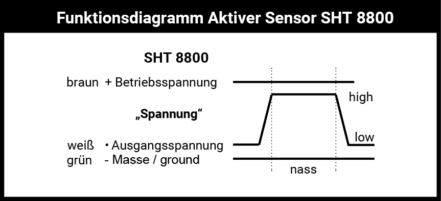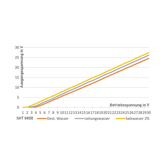 Der SHT 8800 reagiert auf Wasserkontakt mit einer Spannungserhöhung.