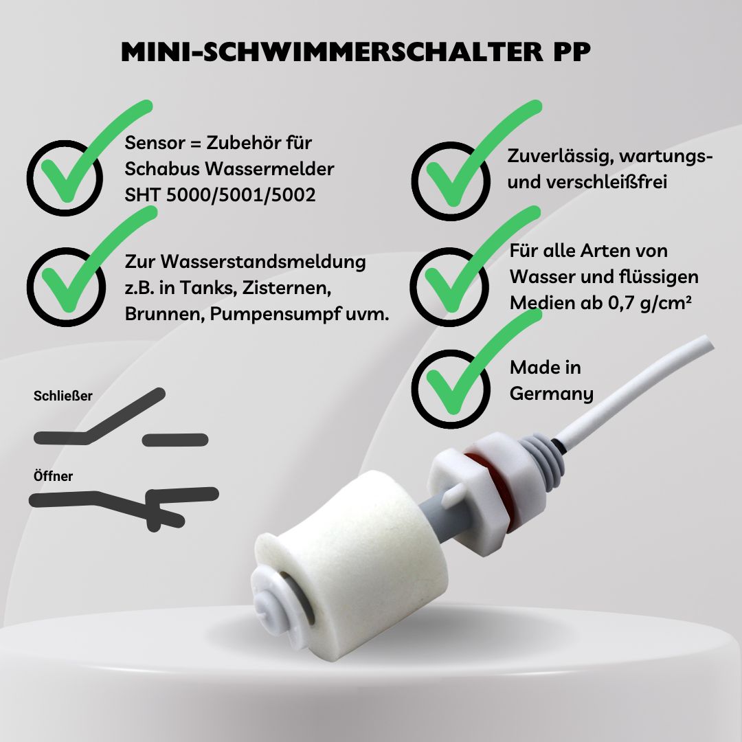 • Mini-Schwimmerschalter = Zubehör für SCHABUS Wassermelder SHT 5000 und 5001, 5002