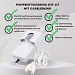 Der SHT 217 ist eine steckfertige Pumpensteuerung, die bei Erreichen einer bestimmten Wasserhöhe eine angeschlossene Wasserpumpe einschaltet und nach einer einstellbaren Nachlaufzeit von 0 bis 100 Sekunden nach Abtrocknen des Sensors auch wieder abschaltet. Eine akustische und optische Warnung signalisiert die Wasseranwesenheit.Ein sicheres und definiertes Abschaltverhalten erreicht man nur mit Mini-Schwimmerschalter (SHT 227).