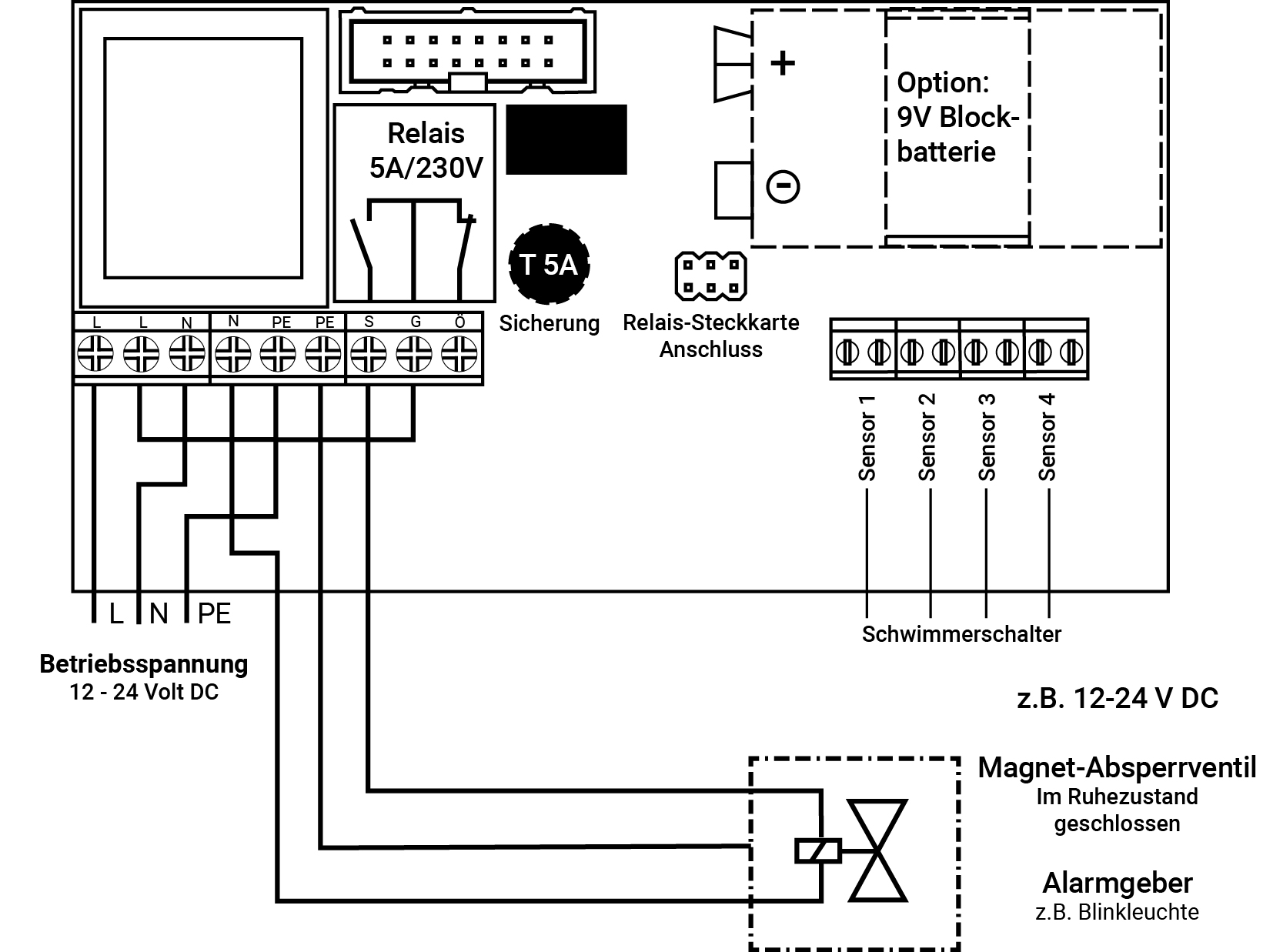 Wassersensor oder Mini-Schwimmerschalter bitte mit bestellen!
