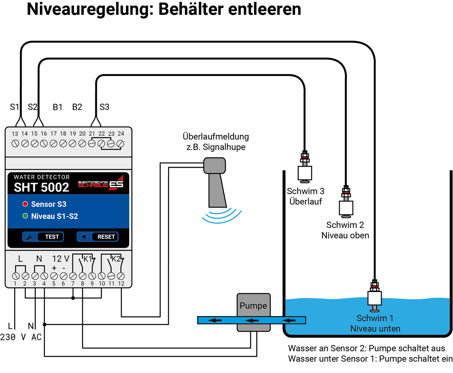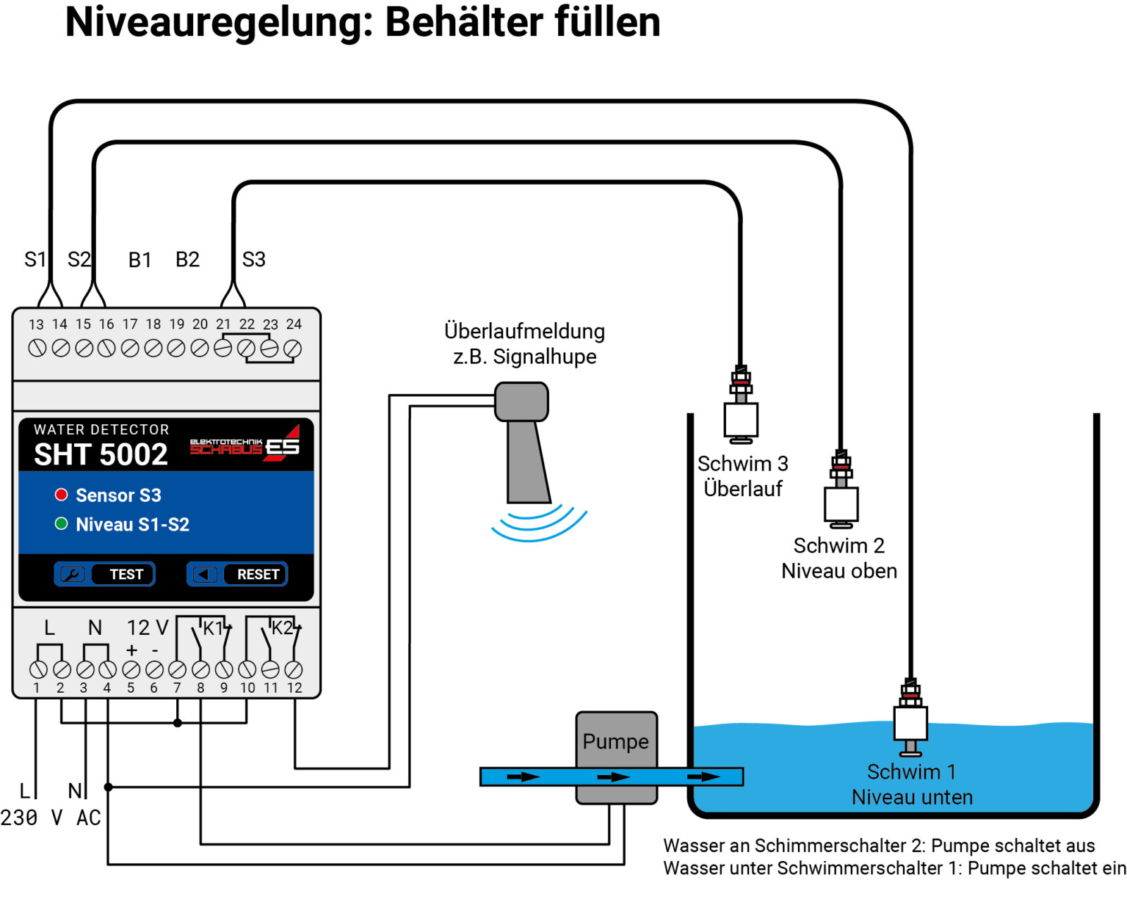 💧 SHT 5002 – Intelligente Niveauregelung & Überlaufmeldung in einem Gerät