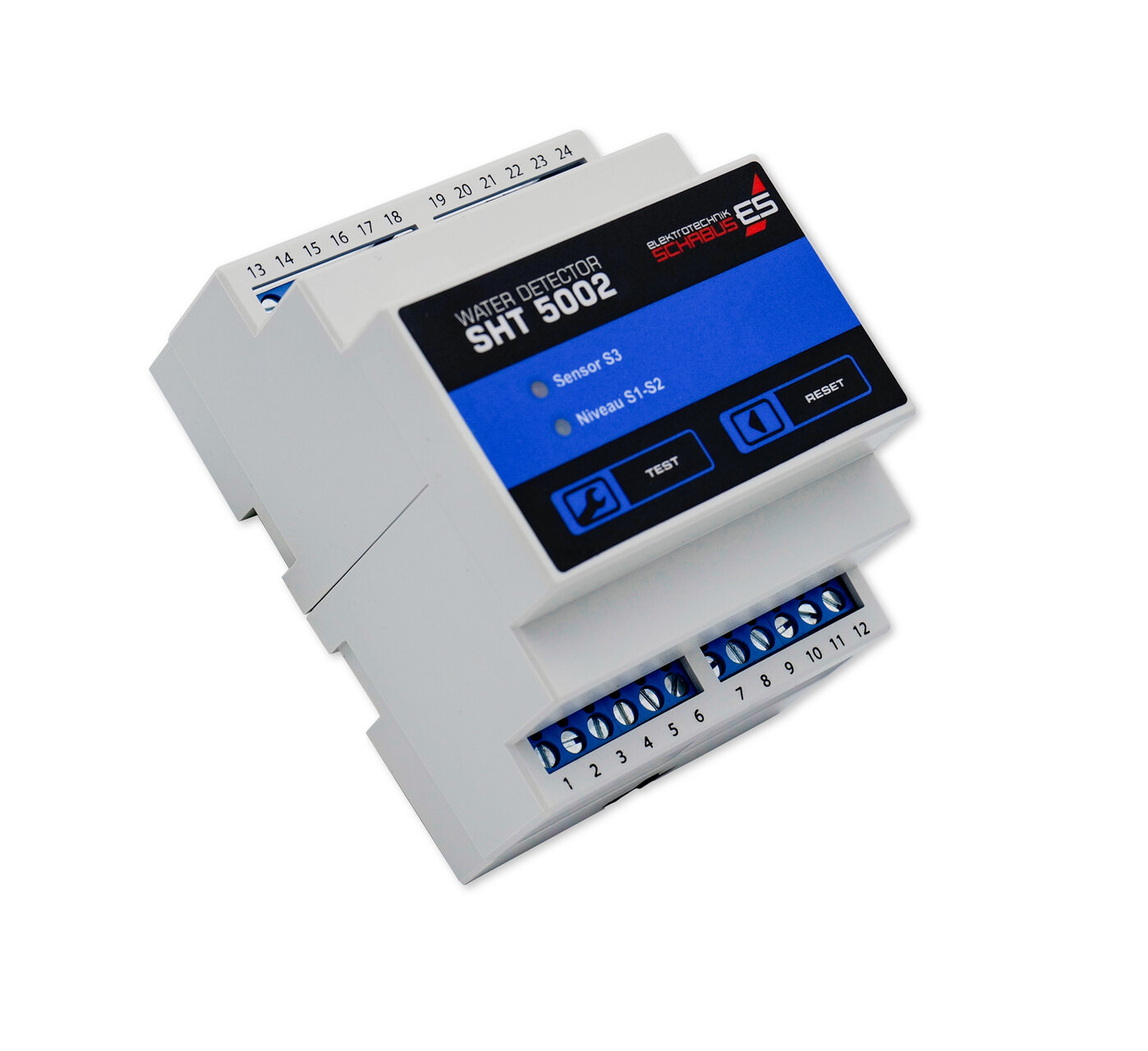 Der SHT 5002 ist mehr als ein Wassermelder – er ist ein leistungsfähiger 2-Punkt-Niveauregler mit zusätzlicher Überlaufwarnung, der sich ideal zur Hutschienenmontage im Sicherungskasten oder Kleinverteiler eignet. Dank zwei separater Meldelinien lassen sich gleich mehrere Funktionen gleichzeitig realisieren: das präzise Befüllen oder Entleeren eines Behälters sowie die unabhängige Überwachung auf Überlauf oder Leckage.