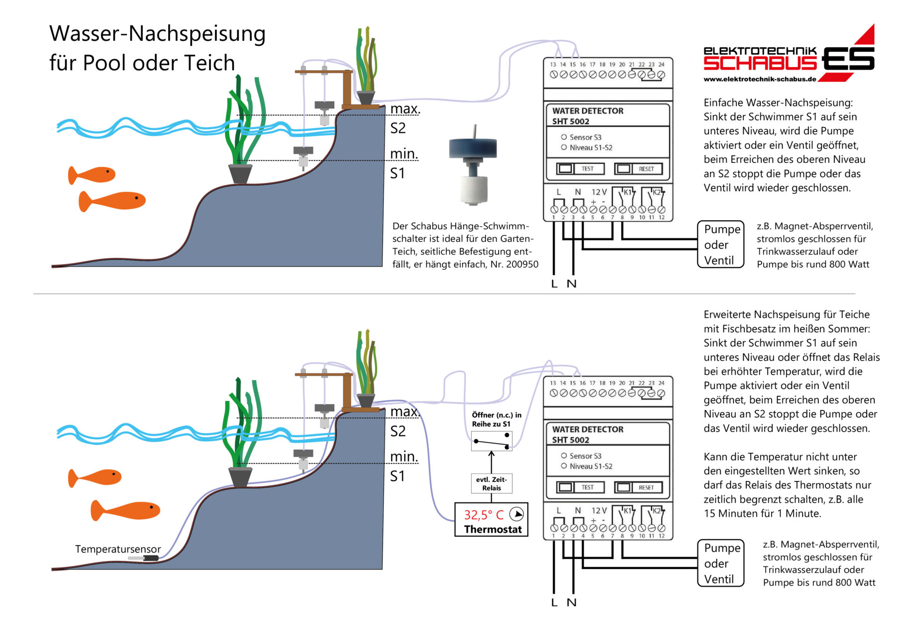 • Niveauregelung für Tanks, Gartenteich, Pool, Zisternen (2-Punkt-Regeler)